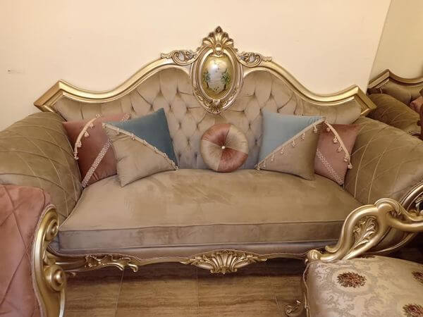 أريكة جلدية فاخرة مصممة لتوفير أقصى درجات الراحة والأناقة لغرفة المعيشة، مصنوعة من جلد عالي الجودة مع دعم متين للمقاعد.