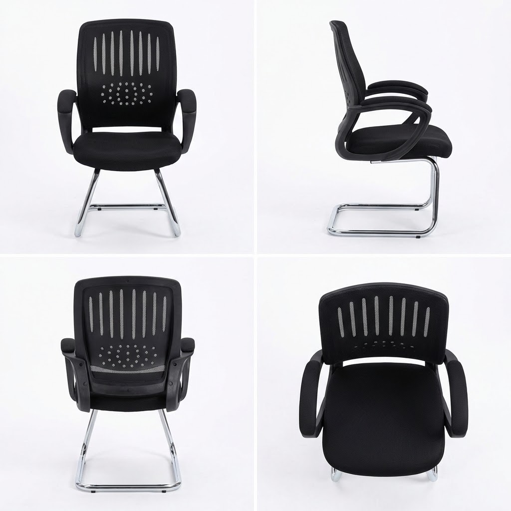 *سهولة التنظيف: خامة الشبك والقماش الأسود لا تُظهر الأوساخ بسهولة، وتنظيفها بسيط باستخدام المكنسة الكهربائية أو قماش مبلل. *التحمل: مصمم لتحمل الاستخدام اليومي الشاق (Heavy Duty)، وعادة ما يتحمل أوزاناً تصل إلى 100-120 كجم (حسب الجودة) *مساند الذراعين: قد تكون ثابتة مصنوعة من البلاستيك القوي و المبطن. *المقعد: يكون المقعد عادةً مبطناً بإسفنج عالي الكثافة ومغطى بقماش مسامي أسود لتوفير راحة للجلسات الطويلة. *دعم الظهر (Ergonomics): تصميم الظهر عادة ما يكون مقوساً ليحاكي انحناء العمود الفقري الطبيعي. *تهوية فائقة: الميزة الأبرز هي تدفق الهواء. الشبك يسمح بمرور الهواء إلى ظهر المستخدم، مما يمنع التعرق وتراكم الحرارة أثناء الجلوس لفترات طويلة، عكس الكراسي الجلدية. *القاعدة: تكون قاعدة على شكل (C) من المواسير لتحمل وزن ثقيل. *الخامة الخلفية: يتميز بظهر مصنوع من قماش الشبك (Mesh) القوي والمرن، وهو عبارة عن نسيج شبكي يسمح بالرؤية من خلاله جزئياً، مما يعطي الكرسي مظهراً عصرياً وخفيفاً غير متكدس.