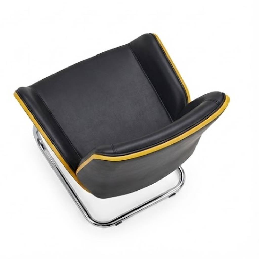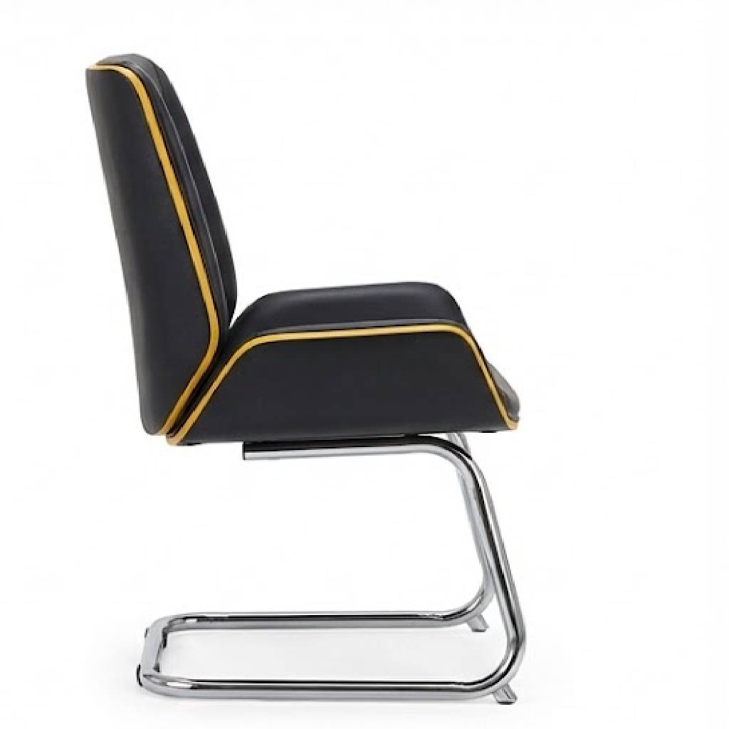 ارتقِ بمكتبك إلى مستوى جديد من الفخامة والراحة. يجمع هذا الكرسي التنفيذي بين كلاسيكيات تصميم "منتصف القرن" (Mid-Century Modern) وبين متطلبات الراحة العصرية. صُمم خصيصاً للمدراء وأصحاب الذوق الرفيع الذين يبحثون عن قطعة أثاث تضفي هيبة وأناقة على مساحة العمل، دون التنازل عن الراحة طوال ساعات العمل الطويلة. لماذا تختار هذا الكرسي؟ تصميم أيقوني فاخر: يتميز بهيكل خارجي من الخشب المنحني (Bentwood) بلون الجوز الدافئ، مما يخلق تبايناً فنياً رائعاً مع الجلد الأسود، ليجعل الكرسي قطعة ديكور فنية وليس مجرد مقعد. راحة مثالية للجلسات الطويلة: ظهر متوسط بتصميم انسيابي يوفر دعماً كاملاً للعمود الفقري والرقبة، مع حشوة إسفنجية عالية الكثافة تضمن عدم الهبوط مع الاستخدام المستمر. خامات عالية الجودة: تنجيد من الجلد الفاخر (Premium Leather) الناعم الملمس وسهل التنظيف، مع خياطة متقنة تبرز تفاصيل التصميم. ثبات ومرونة: يرتكز الكرسي على قاعدة من المواسير على شكل حرف(C) شديد التحمل المواصفات الفنية: نوع الكرسي: كرسي إدارة تنفيذي الخامة الخارجية: قشرة خشبية متينة (تصميم الجوز). خامة التنجيد: جلد أسود فاخر مقاوم للتشقق. القاعدة: معدنية وتتحمل الأوزان الثقيلة.. مثالي للاستخدام في: المكاتب الإدارية والتنفيذية. المكاتب المنزلية (Home Office) الراقية. قاعات الاجتماعات الفاخرة.