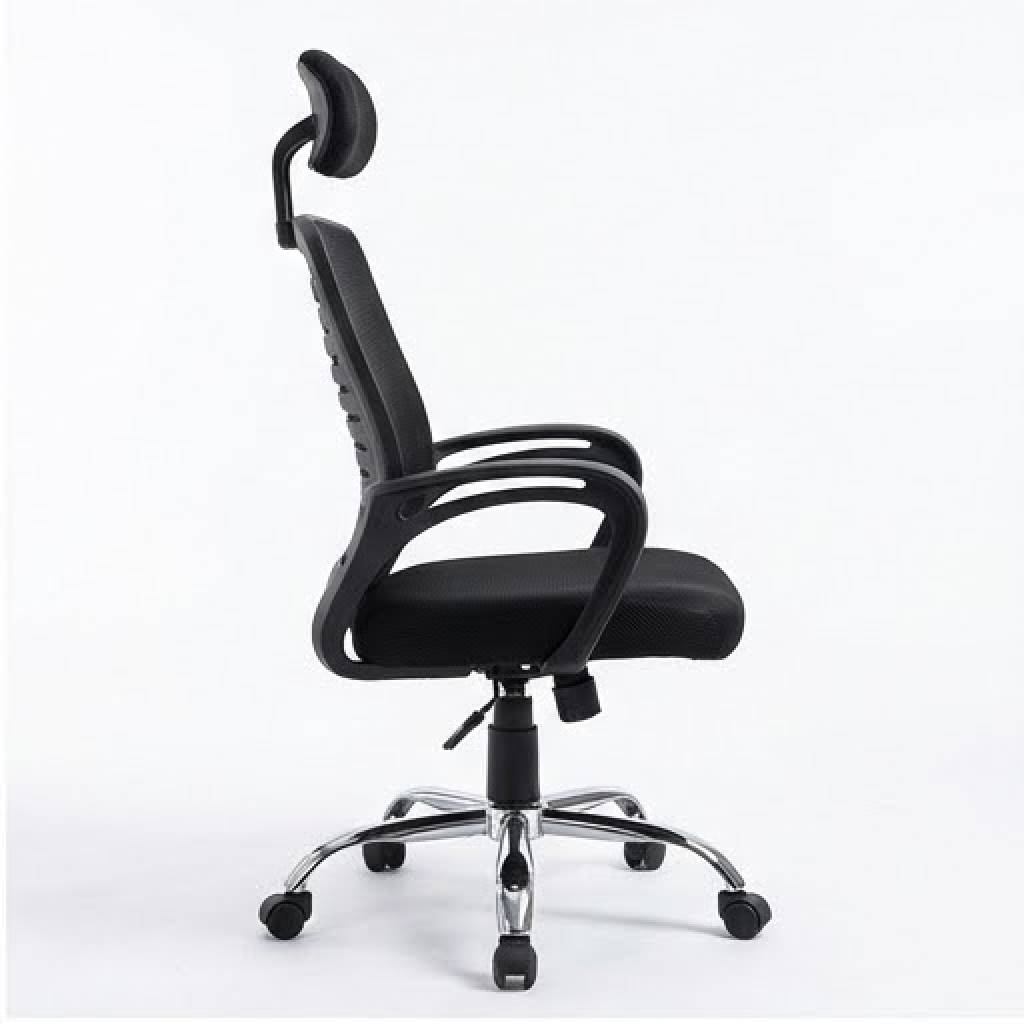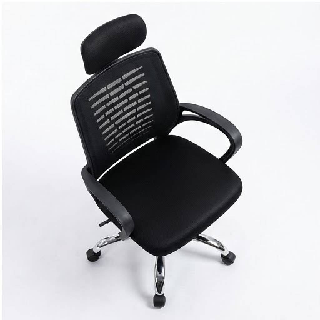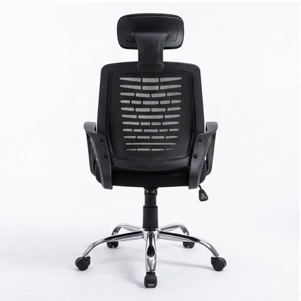 تصميم داعم للظهر (Medical Mesh Back): ظهر الكرسي مصنوع من الشبك عالي الجودة الذي يسمح بمرور الهواء (تهوية ممتازة) ليمنع التعرق أثناء الجلوس لفترات طويلة. كما يتميز بتصميم هيكلي بخطوط عرضية لدعم فقرات الظهر وتخفيف الضغط. مسند رأس مريح (Headrest): مزود بمسند رأس مبطن قابل للتعديل لدعم الرقبة والرأس، مما يساعد على الاسترخاء وتقليل التوتر العضلي. مقعد عالي الكثافة: قاعدة الجلوس مبطنة بإسفنج عالي الكثافة ومغطاة بقماش مسامي، لضمان أقصى درجات الراحة وعدم الهبوط مع كثرة الاستخدام. قاعدة متينة من الكروم: يرتكز الكرسي على قاعدة خماسية معدنية مطلية بالكروم اللامع، مما يمنحه مظهراً فخماً وثباتاً عالياً وقدرة تحمل ممتازة. عجلات سلسة الحركة: مزود بعجلات قوية تتحرك بسلاسة وهدوء ومناسبة لجميع أنواع الأرضيات (السجاد، الباركيه، السيراميك). تحكم كامل: إمكانية تعديل ارتفاع الكرسي بسهولة عبر مكبس هيدروليكي قوي، مع خاصية الدوران 360 درجة. مساند يد انسيابية: مساند ذراعين بتصميم عصري منحني لراحة اليدين والكتفين أثناء الكتابة أو استخدام الكمبيوتر.