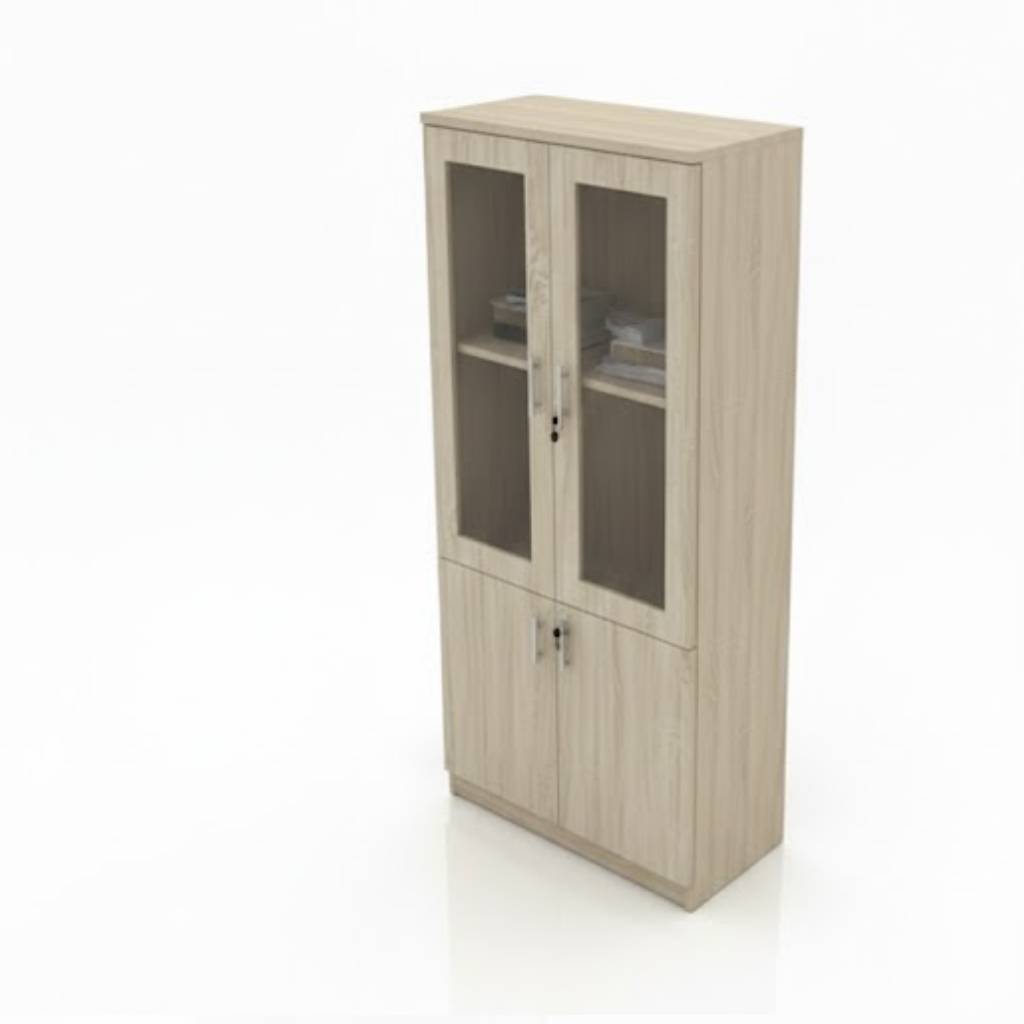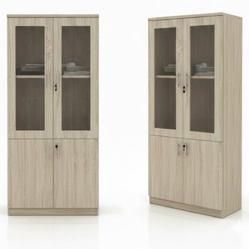 تصميم ذكي ومزدوج: القسم العلوي بأبواب زجاجية شفافة يسهل رؤية المحتويات، والقسم السفلي خشبي بالكامل لتخزين الملفات الخاصة. نظام حماية متكامل: كلا القسمين (العلوي والسفلي) مزود بـ أقفال أمان منفصلة للحفاظ على خصوصية ملفاتك. خامات عالية الجودة: مصنوعة من خشب "MDF التيلاندى" المتين الذي يضفي إشراقة واتساعاً على المكان. مقابض عصرية: مقابض معدنية طويلة بتصميم "كروم" انسيابي يسهل عملية الفتح والإغلاق. ثبات ومتانة: قاعدة الخزانة مصممة لتحمل الأوزان الثقيلة من الملفات والكتب دون تأثر. المواصفات الفنية: اللون: خشب طبيعي فاتح (Light Oak). الأبواب: زجاج شفاف مقوى (علوي) + خشب صلب (سفلي). الاستخدام: مثالية للمكاتب، غرف الدراسة، أو حتى كقطعة ديكور منظمة في المنزل. مقاس الدولاب 80*40*180